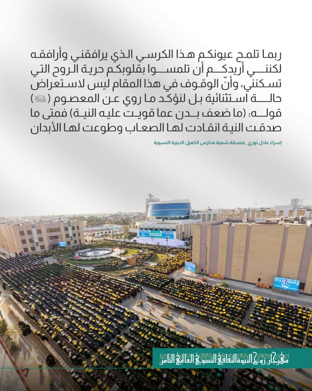 أعلنت العتبة العباسية المقدسة عن موافقة المتولي الشرعي السيد أحمد الصافي على إقامة مهرجان روح النبوة الدولي في نسخته الثالثة، والذي سيقام في العاشر من شهر جمادى الأول لعام 1447 للهجرة في رحاب جامعة العميد...