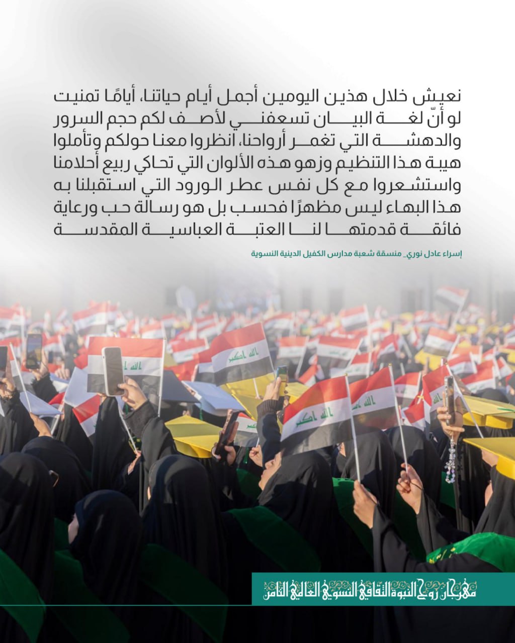 أعلنت العتبة العباسية المقدسة عن موافقة المتولي الشرعي السيد أحمد الصافي على إقامة مهرجان روح النبوة الدولي في نسخته الثالثة، والذي سيقام في العاشر من شهر جمادى الأول لعام 1447 للهجرة في رحاب جامعة العميد...